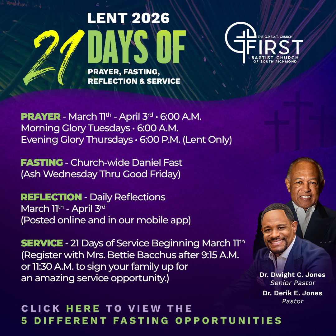 - Dr. Derik E. Jones, Pastor of the historic First Baptist Church of South Richmond, Virginia